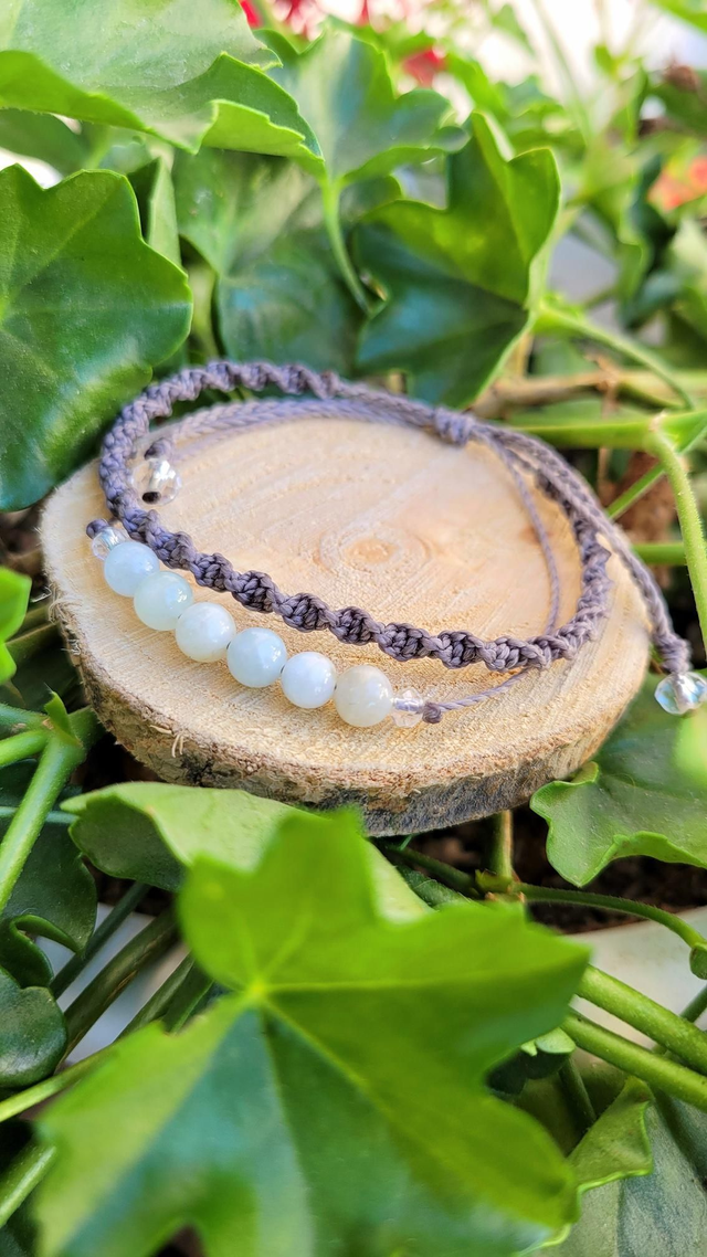 Bracelet double rang élegant – macramé et aigue-marine naturelle