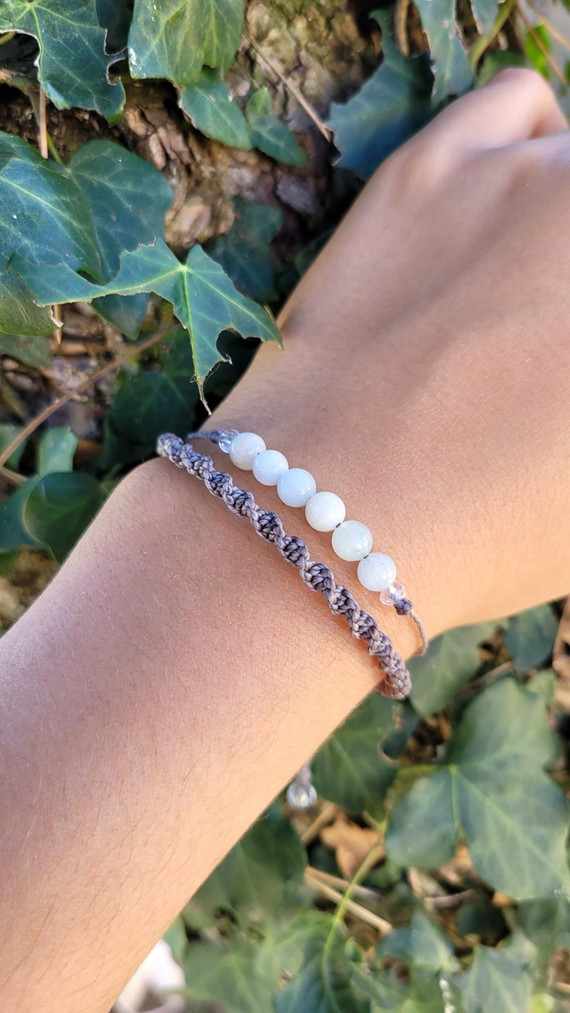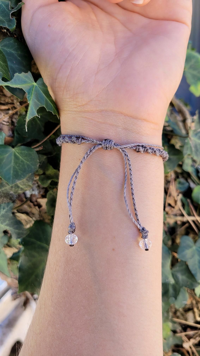 Le double rang crée une ligne élégante autour du poignet, tandis que le nœud coulissant permet un ajustement précis et confortable. Les perles de finition ajoutent une touche délicate.