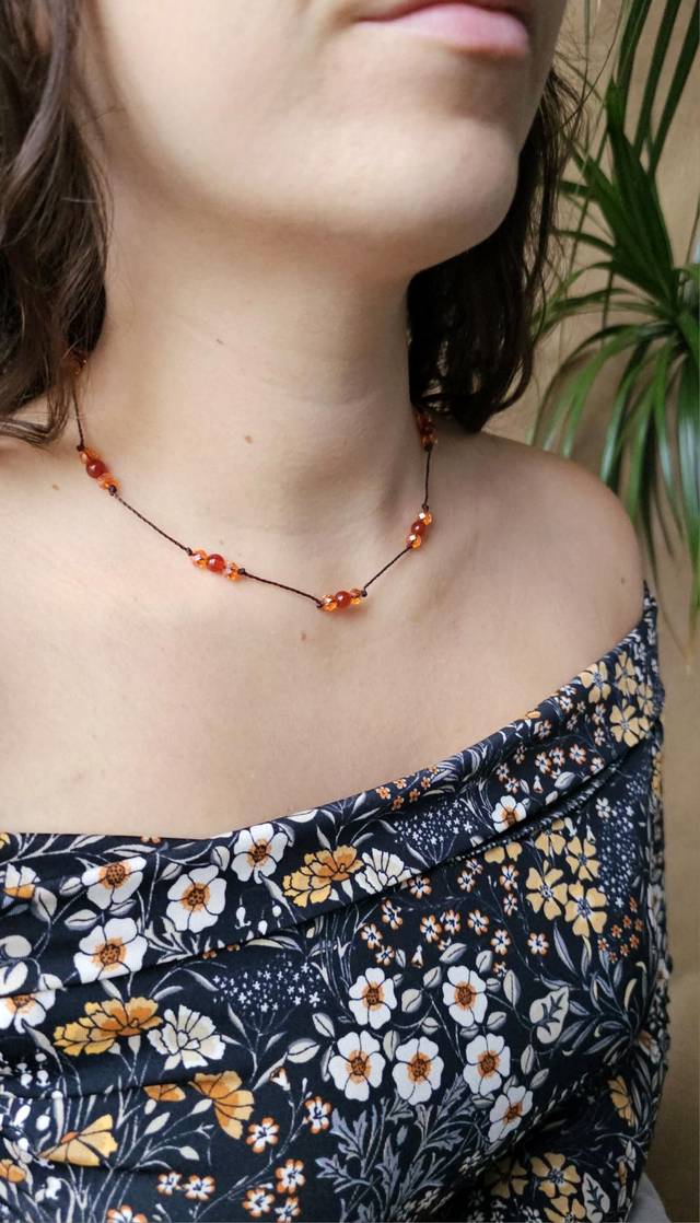 Collier fait main - perles de cornaline et perles de verre facettées orange scintillantes