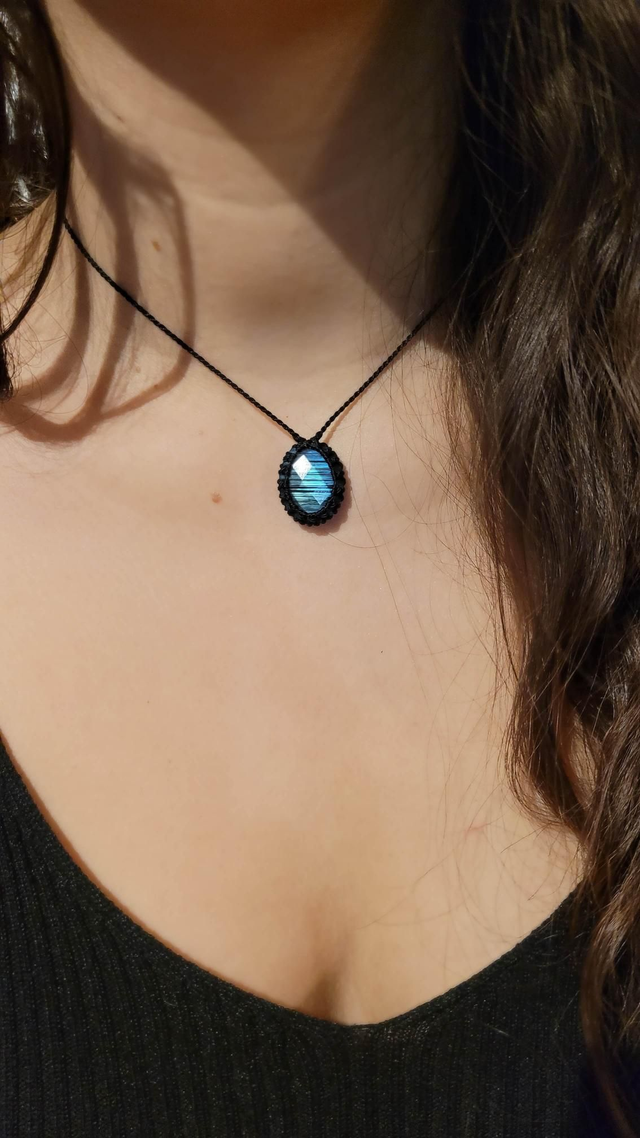 Collier macramé noir - Labradorite double face bleue