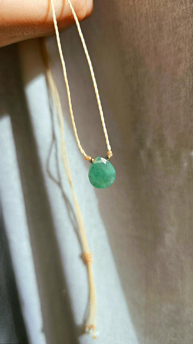 Création faite main. Ce collier fin et élégant met en avant une superbe aventurine, la pierre est facettée.