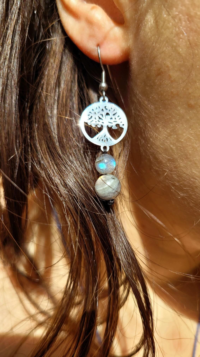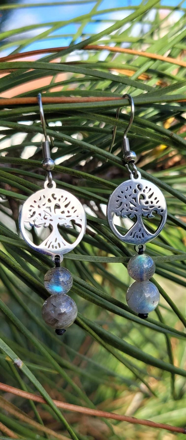 Boucles d'oreilles arbre de vie - Labradorite