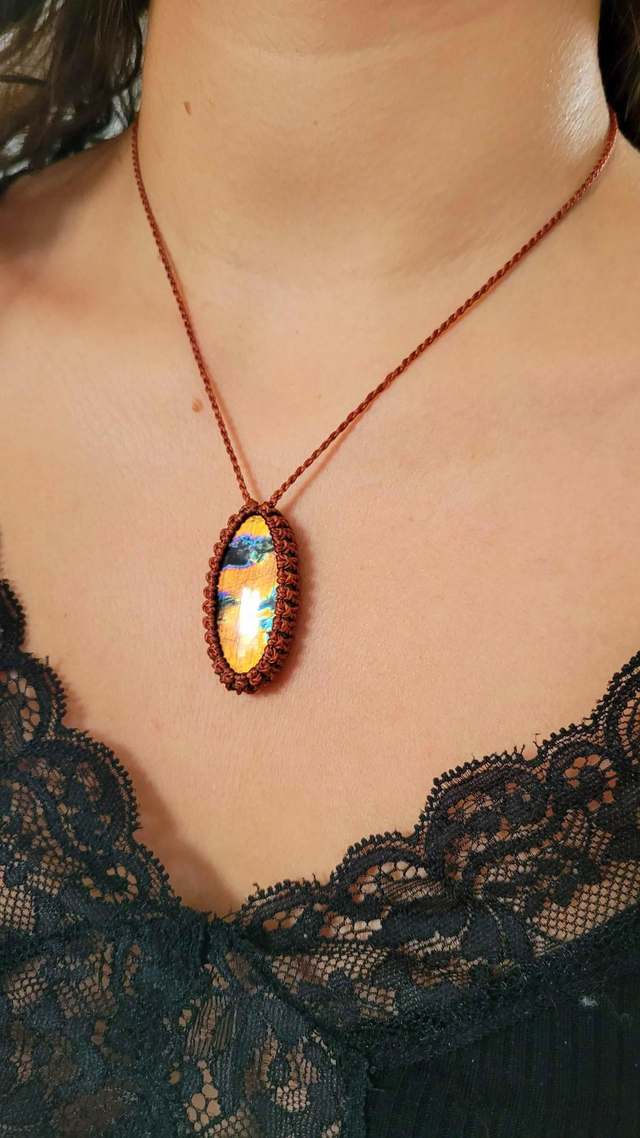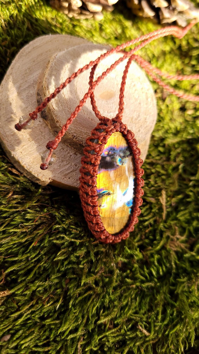 Pendentif Labradorite multicolore macramé couleur cuivre